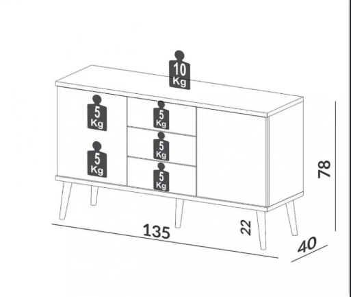 Buffet 100% MDF | 2 Portas + 3 Gavetas + Pés em Madeira.