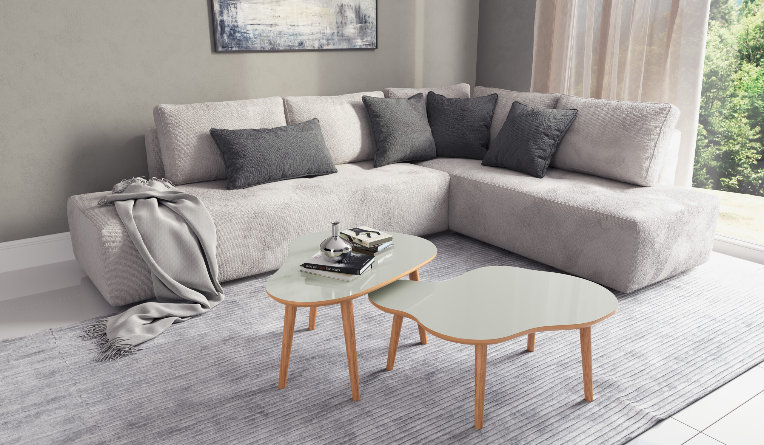 Chegou o Conjunto de 2 Mesas de Centro Orgânicas 100% MDF, o combo que une modernidade, leveza e design sofisticado para elevar qualquer sala! 🛋️✨
