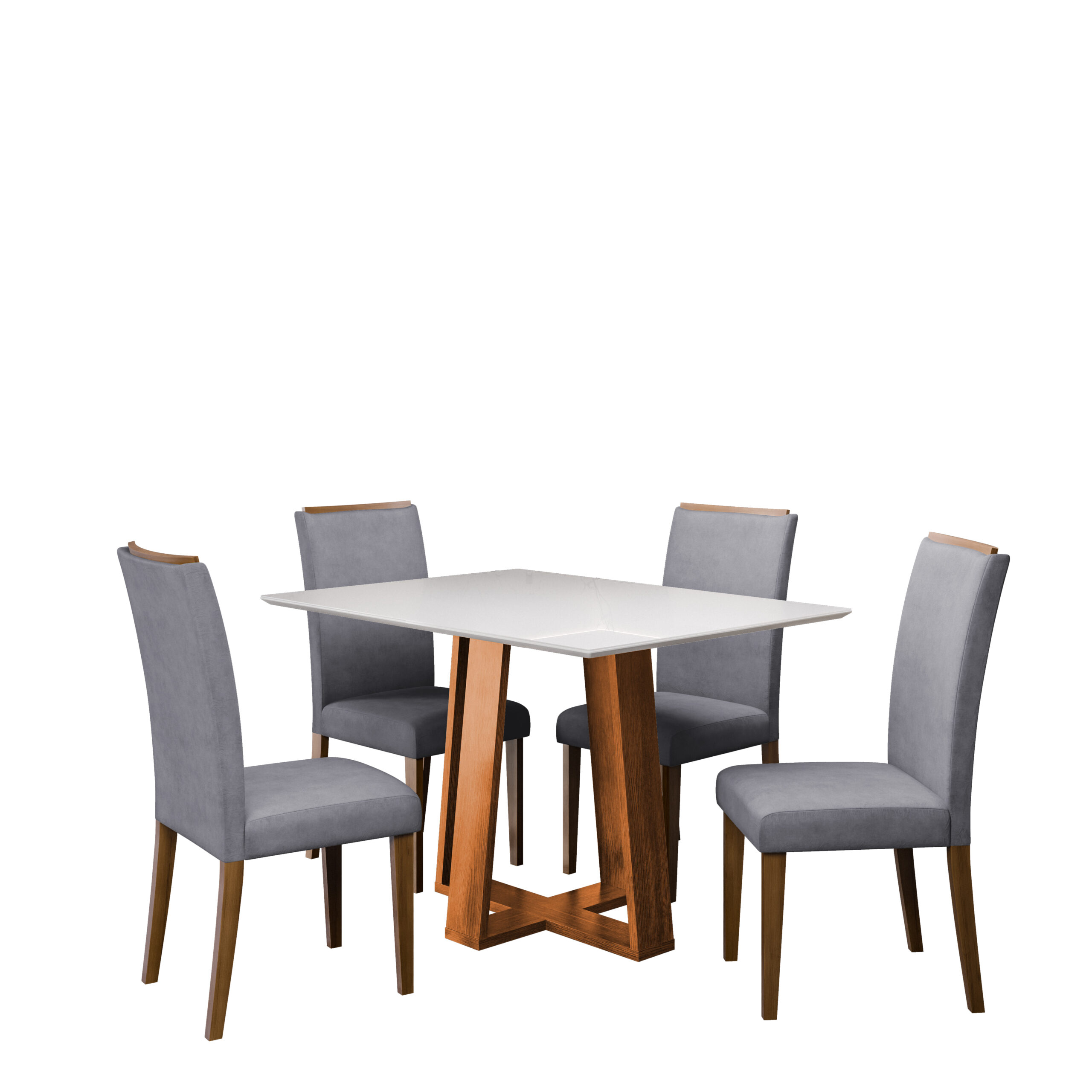 O Conjunto de Jantar com Mesa em MDF e 4 Cadeiras em Madeira Maciça traz um toque sofisticado e moderno para sua casa, ideal para espaços menores sem abrir mão do estilo.