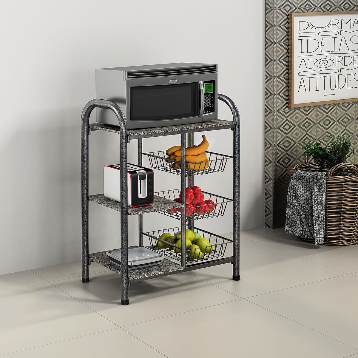Fruteira Flex 3 Cestos + 3 Prateleiras com Tampo em Granito