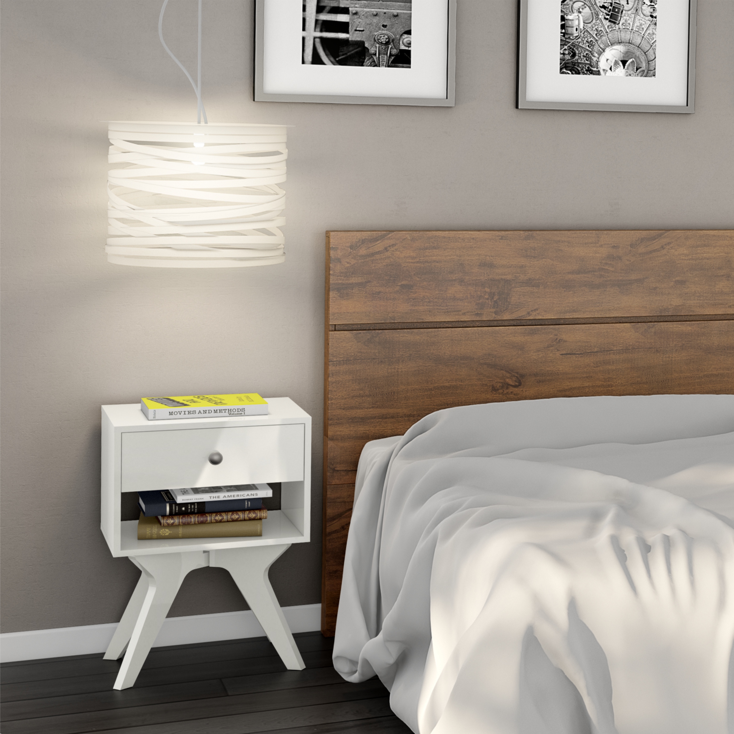 Design retrô e funcionalidade moderna: Mesa de Cabeceira 100% MDF com 1 Gaveta + 1 Nicho! 🛏️✨