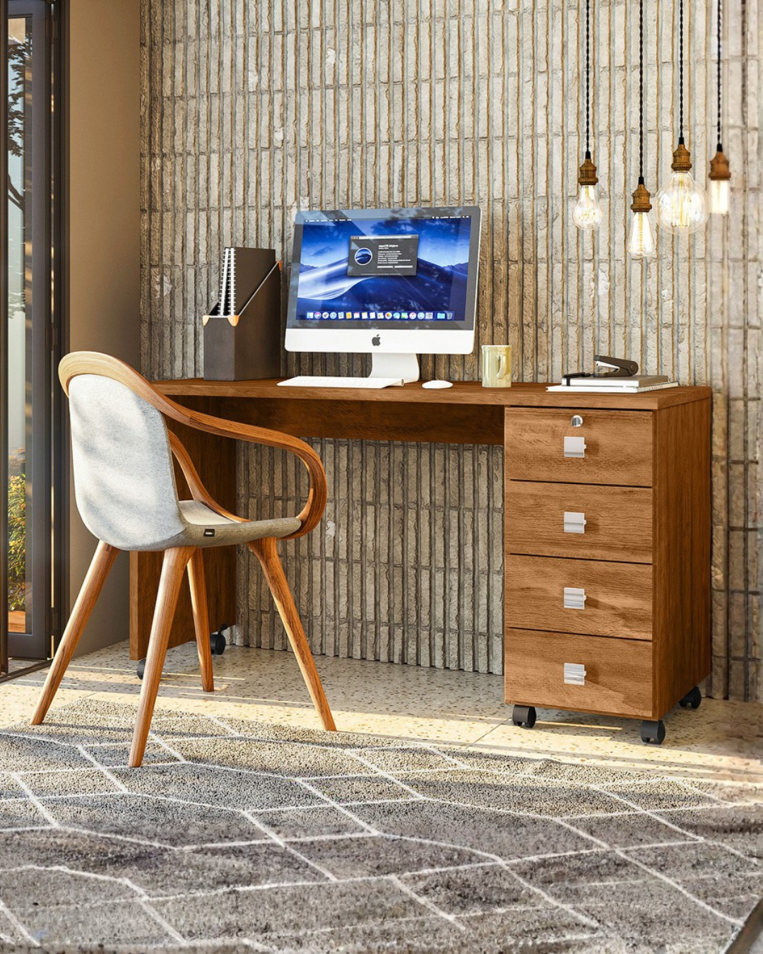 A Mesa Office com 4 Gavetas, Chave e Rodinhas é perfeita pra quem busca conforto e funcionalidade no ambiente de trabalho — seja no escritório ou em casa! 😍