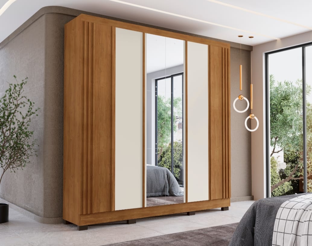 O roupeiro que une elegância, espaço e resistência! Roupeiro Casal 100% MDF com espelho, pensado para quem deseja um quarto organizado com estética moderna e acabamento premium. 🪞✨