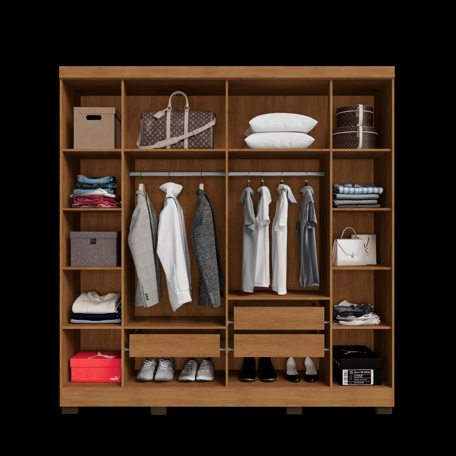 ✔️ Interior otimizado com prateleiras e cabideiros — perfeito para organizar roupas, acessórios e enxoval
