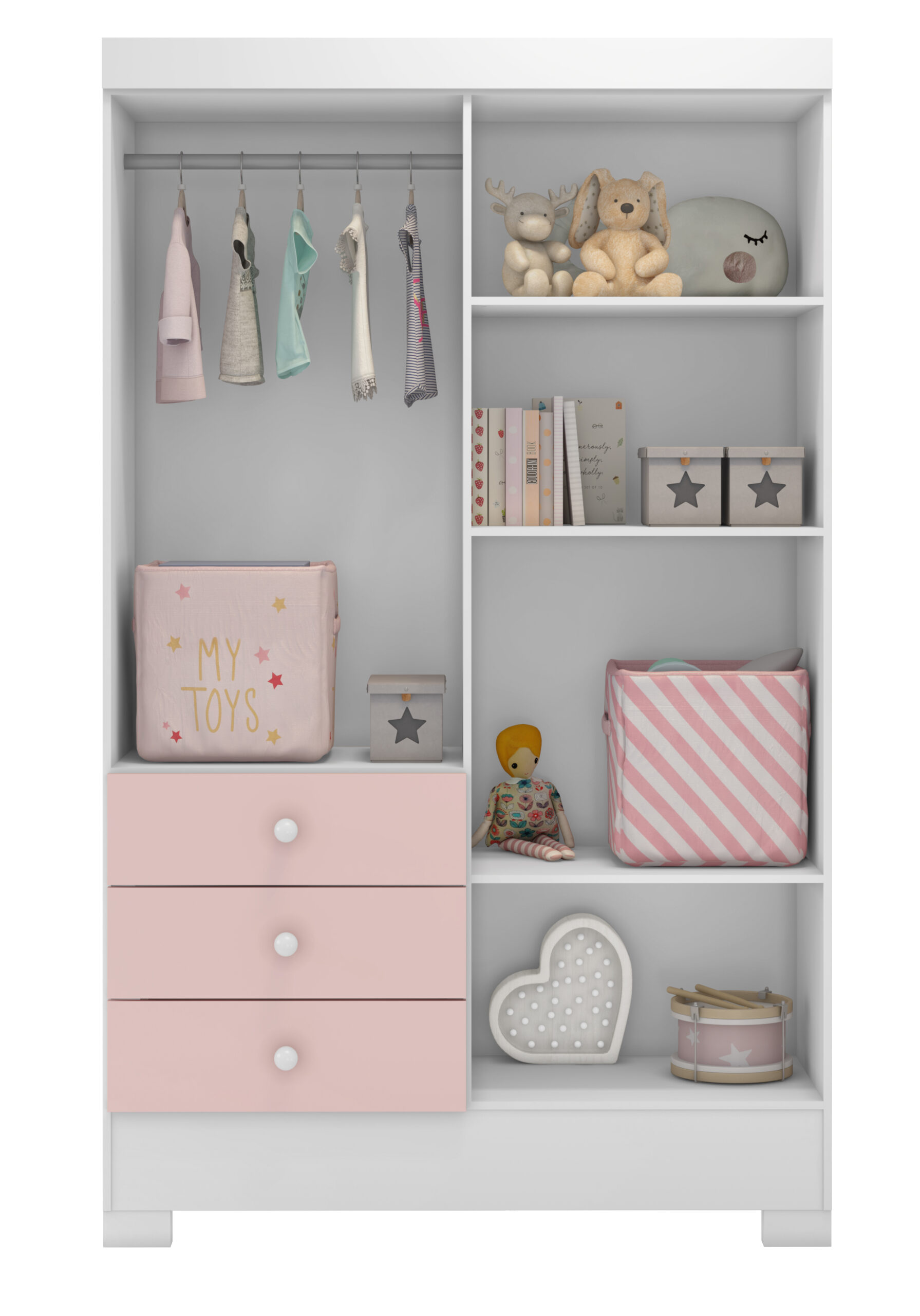 Preparando o quarto do bebê!? Nessas horas um móvel bonito, prático, elegante e que deixe o quarto o mais aconchegante possível para a chegada do bebê é essencial. Não é!? Ou até para acrescentar no visual do quarto das crianças!? Dá só uma olhadinha em tudo que o Roupeiro Infantil 4 Portas e 3 Gavetas!