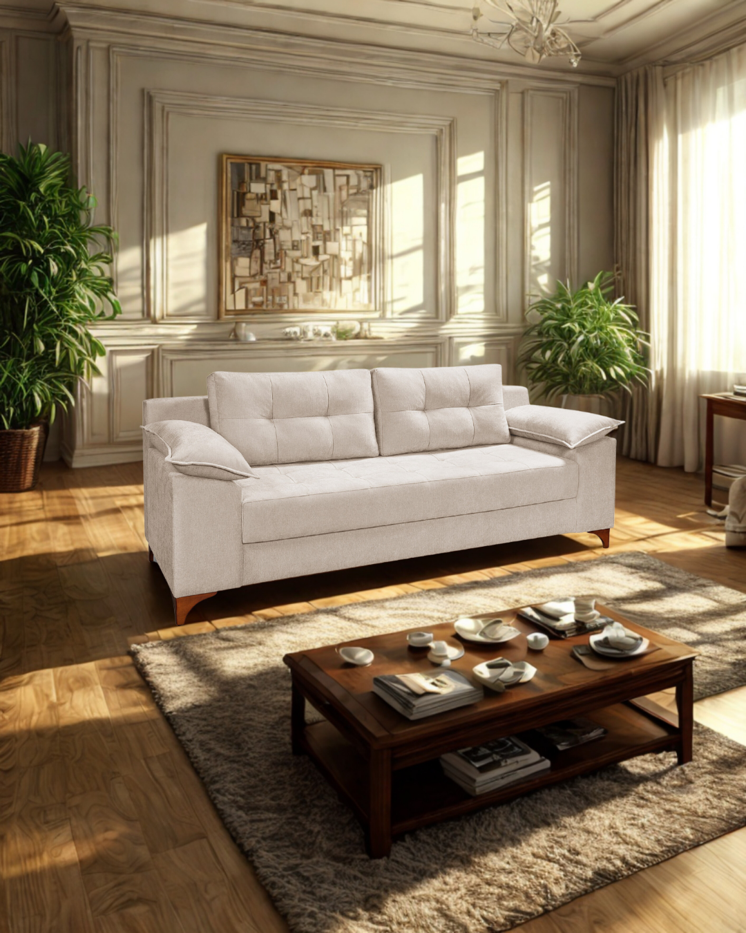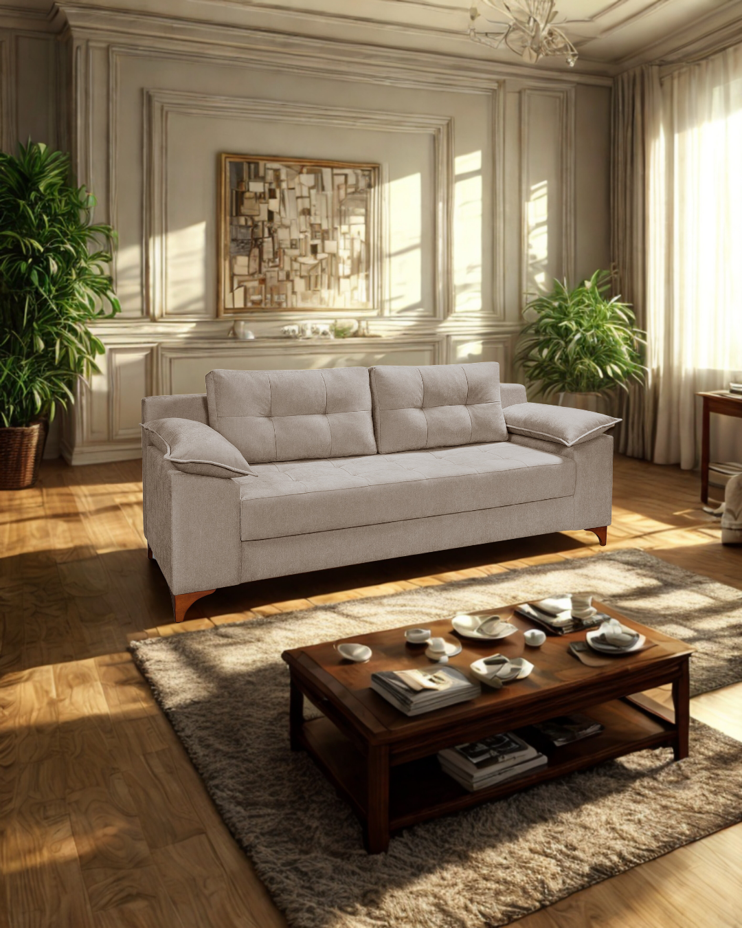 ✅ Acabamento Dream Touch – tecido chenile ultra macio, prático e elegante